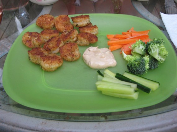 We tried a new dish for dinner to pair with the Bedrock Rosé, Pan-Fried Shrimp with Creole Mayonnaise from MyRecipes.com via Cooking Light magazine. We just julienned some cucumber and carrots and added some broccoli florets to go with the dipping sauce to round out the meal. The recipe is available at http://bit.ly/OsKpBe