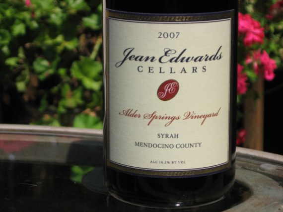 2007 Jean Edwards Cellars Syrah Alder Springs Vineyard Mendocino County – Winery supplied bottle, Release price $45.00