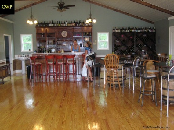 After accidently driving past the winery and having to make a U-turn, we arrived at the winery and tasting room. Their new and very nice looking tasting room had shining hardwood floors, the prerequisite tasting bar, and several tables. We stopped in on a Thursday afternoon and were the only people there. We were told they get extremely busy on Saturdays. As expected, their busiest time of the year is the month leading up to Christmas. Everyone has to have some alcohol to successfully celebrate the holiday season.