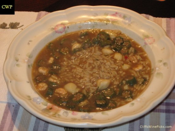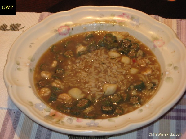 We had some Seafood Gumbo to pair with the Riesling.  The Gumbo was fairly spicy with bay scallops, salad shrimp, lump crabmeat, and a ton of fresh okra from my father in law’s garden in South Carolina.  I absolutely love an aged Riesling and a spicy gumbo, to me it’s a perfect pairing.  Definitely opposites attract with hot versus cold and spicy versus sweet.  It was a delicious meal and now I can have some leftover gumbo for lunch next week and enjoy a glass of the Riesling while relaxing.  Life is good!