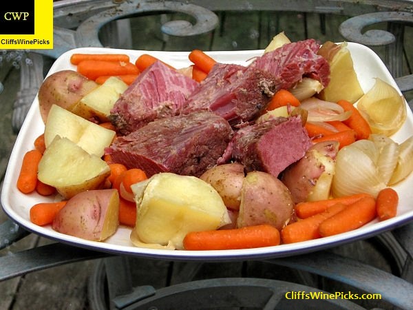 We had a slow simmered corned beef with potatoes, carrots, and some onion for dinner with the Melville Pinot. It may be almost the middle of June, but Summer hasn’t made an appearance in the upper Midwest. At least it was nice enough we could enjoy our dinner and wine on the deck.