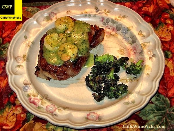 We decided to do a form of Surf & Turf for dinner. We had a grilled Strip Steak with a few medium shrimp in a VERY garlicky scampi sauce and some roasted broccoli.
