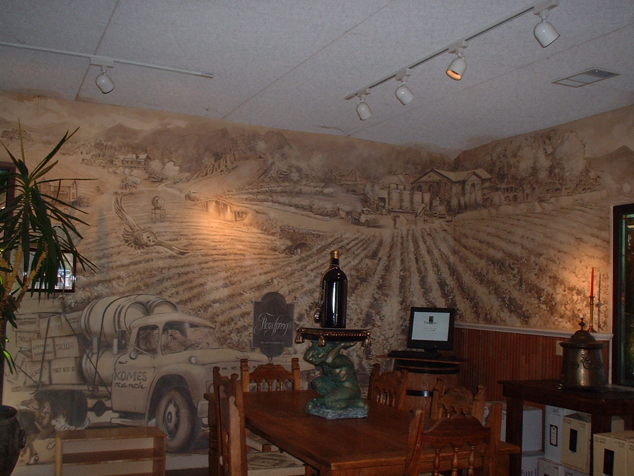 Over the years Flora Springs was always one of our stops when we visited Napa Valley. We took the two pictures below of the stained glass and wall murals during a visit in late August 2001, a couple weeks before 9/11. When I was offered a couple samples from them, I was excited to reacquaint myself with these wines.