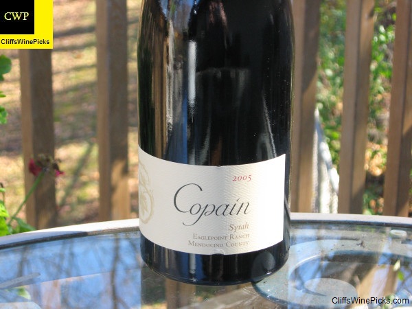 The wine is a fairly deep purple color. The enjoyable nose has blackberries, smoked meat, black pepper, roasted herbs, dark chocolate, vanilla, and a nice floral note. This has medium to full body, fairly solid ripe tannins, and good acidity. On the palate smoky, meaty berries grab hold first, eventually allowing roasted herbs and dark chocolate to slip into the picture. The finish has nice length and closes with a touch of spicy oak that gets a touch too prominent. A very nice wine from the Copain mailing list for $25, but I wish the oak would integrate a little better on the finish. (90 pts)