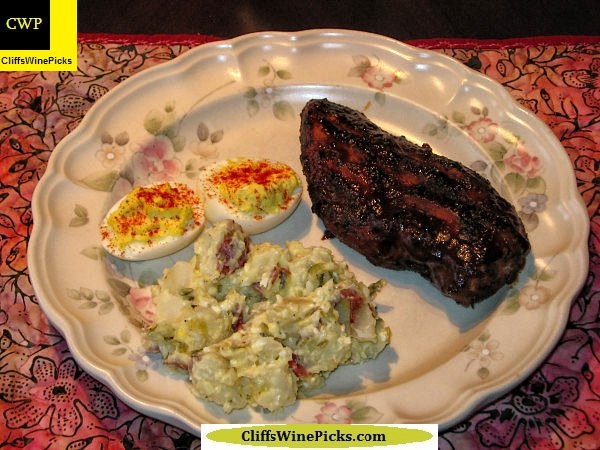 We paired the Carlisle Zin with a fairly simple meal, grilled barbecue chicken, potato salad and at my insistence, deviled eggs.