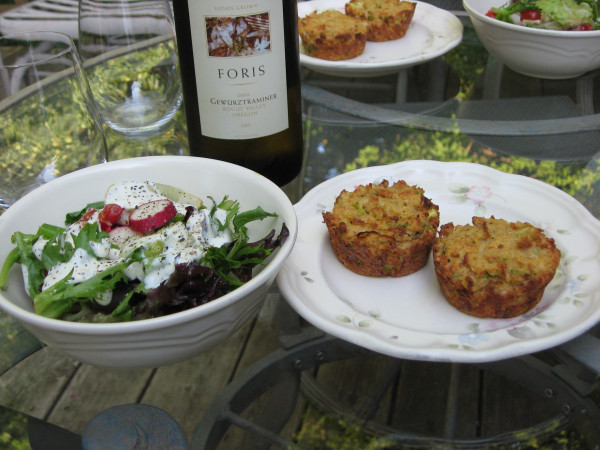 We had the Gewürztraminer with a nice version of Crab Cakes that I found a while ago.  Instead of frying them, these get baked in muffin tins.  A little chopping, mixing, and throw them in the oven.  This is a healthier alternative and a lot easier.  The recipe for these Muffin-Tin Crab Cakes from Eating Well Magazine is available at http://www.cooking.com/recipes-and-more/RecPrint.aspx?rid=10238