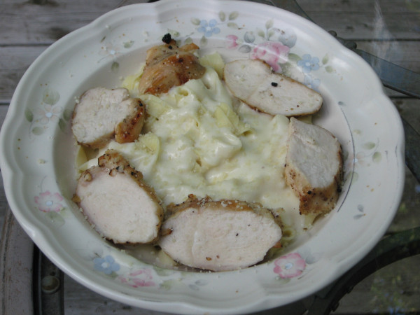 We paired the Soter Pinot Noir with Fettuccini Alfredo with a grilled chicken breast.  This was a marvelous pairing; the acidity in the Pinot cut through the rich Alfredo sauce and added a nice earthy, spicy element to the meal.  This pairing wouldn’t work with a big, rich, California Pinot Noir, but the one from Oregon was top notch.
