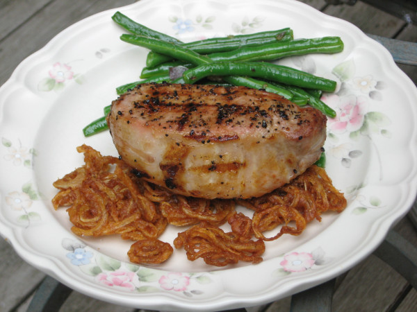 We paired the Villa Creek Grenache with a grilled, thick cut, boneless pork loin chop served over a bed of thin, crunchy onion rings and sauteed fresh green beans with some shallot.  It was a delicious pairing.