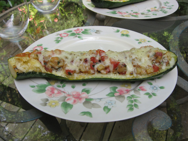 We paired the Villa Creek Rosé with a “house favorite” dinner, a Stuffed Zucchini with Tomatoes and Jack Cheese.  Well, that’s the name, but the “stuffing” also has potatoes, garlic, onion, and basil.  We use a recipe from “Cook’s Illustrated” magazine.  The crisp acidity, fruit and spice paired very nicely with the dish.  Here’s how the finished dish looked:
